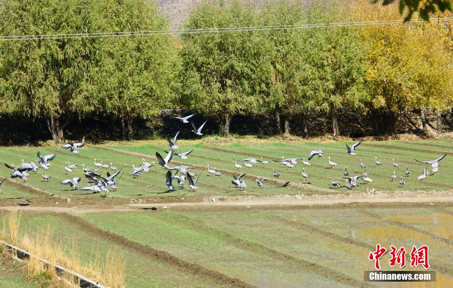 藏南谷地迎來越冬候鳥 斑頭雁、赤麻鴨等在碧水藍天間嬉戲覓食