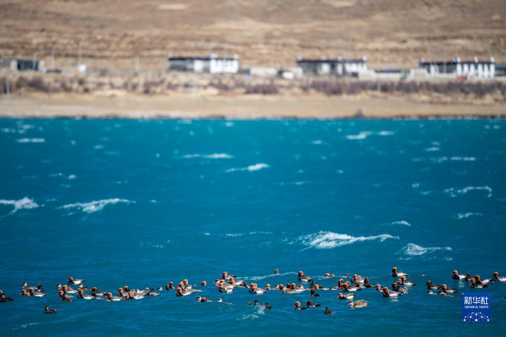 鳥兒在羊卓雍措湖面上游弋(11月16日攝)。新華社記者 孫非 攝