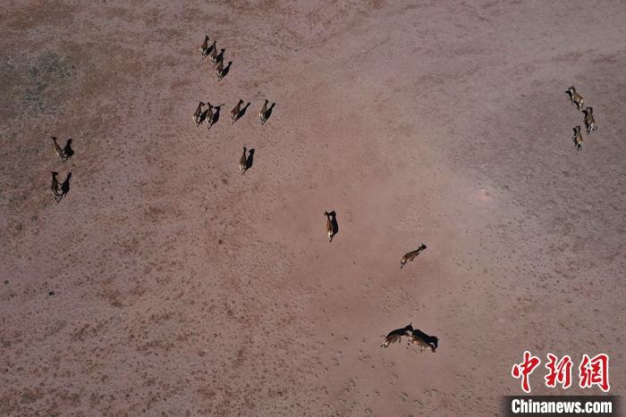 資料圖為西藏自治區(qū)那曲市雙湖縣境內(nèi)的藏野驢。(無人機照片) 中新社記者 貢嘎來松 攝