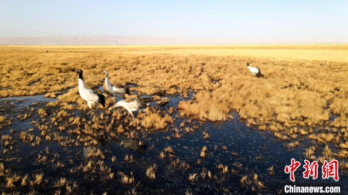 圖為柴達(dá)木盆地內(nèi)的野生黑鶴?!跆m縣委宣傳部 供圖
