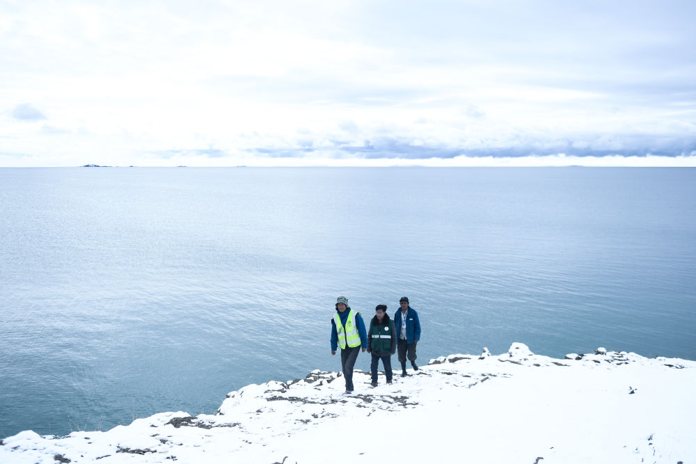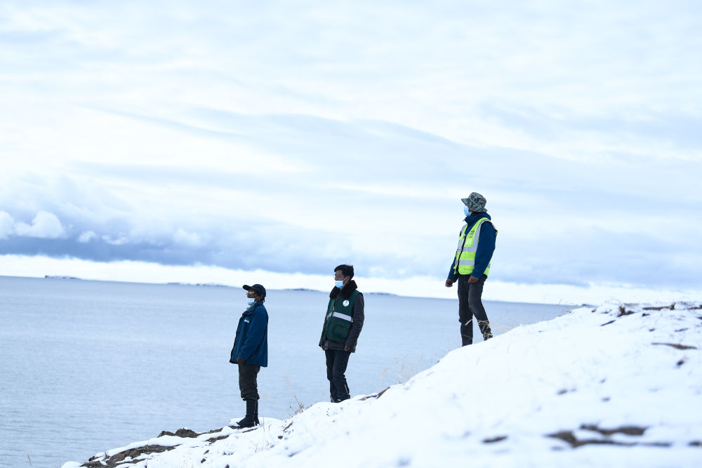 “‘薩’(藏語)是雪豹,‘鬧’(藏語)是巖羊;放牧是巡護,轉(zhuǎn)湖就監(jiān)測;見到動物要記下……”索南文毛邊撿拾垃圾,邊念叨從生態(tài)管護員培訓班上學到的口訣。