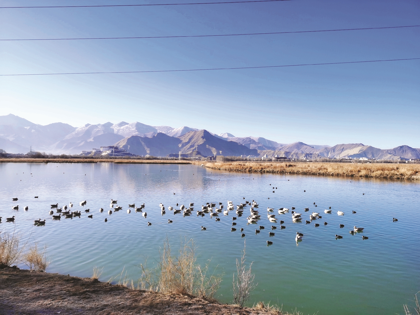 拉魯濕地內(nèi)動物資源豐富,每年冬季11月份至次年4月份都會有大批候鳥來濕地越冬。圖為濕地成群的候鳥。 拉薩融媒記者 郝奕凝攝