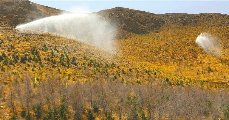 圖為拉薩南北山綠化工程的自動(dòng)智能澆水系統(tǒng)在給寶瓶山樹(shù)林澆水。 記者 格桑倫珠 實(shí)習(xí)生 達(dá)娃宗巴 攝