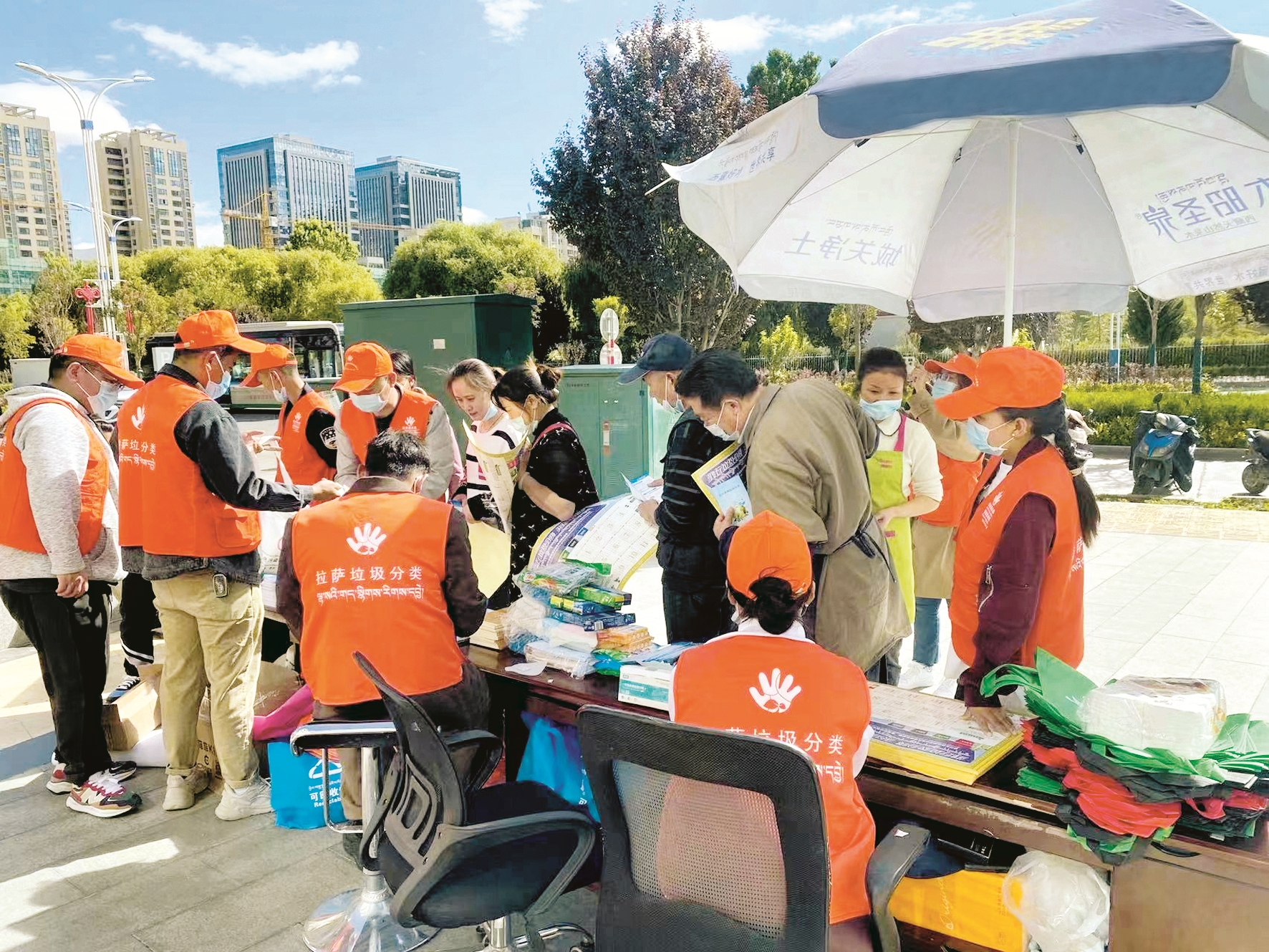 圖為工作人員向過(guò)往市民發(fā)放垃圾分類宣傳品。 (圖片由市分類辦提供) 拉薩融媒記者 范江英