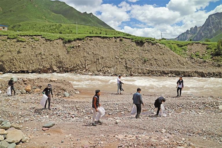 圖為昌都市水利局組織人員對嘎曲河道垃圾進行清理。(圖片由昌都市水利局提供)