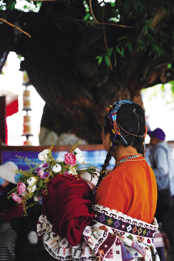 走在熙熙攘攘的八廓街,古樹(shù)已經(jīng)枝繁葉茂,陽(yáng)光很難穿透密集的葉子,只能勉強(qiáng)擠出幾束光,碎落在古樹(shù)下乘涼的老人腳下。樹(shù)下拍照的游客自成一道風(fēng)景,享受著高原夏日的美好時(shí)光。