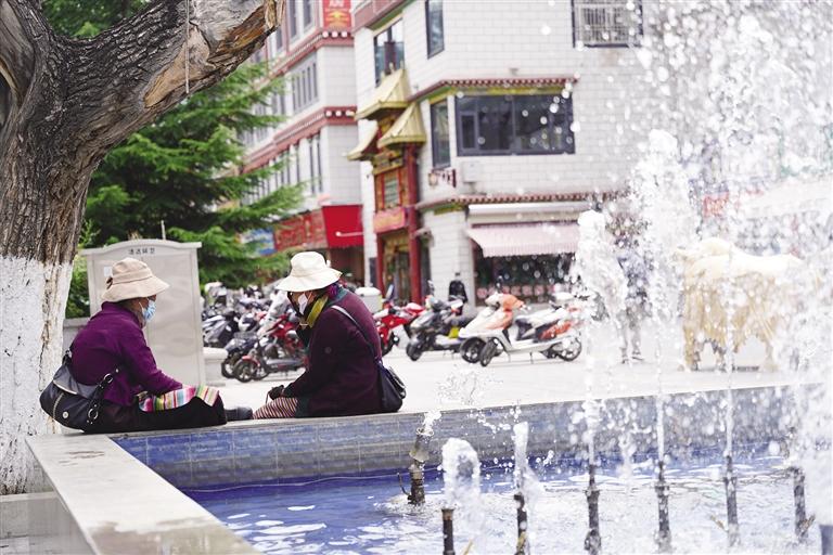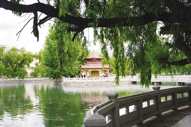很多年輕人會(huì)說(shuō),冰激凌與夏天絕配,殊不知,酸奶也是西藏夏天的絕配。在八廓街的巴扎酸奶坊,來(lái)一杯香氣濃郁、酸甜平衡的冰鎮(zhèn)竹筒酸奶,清涼提神,回味無(wú)窮。吃完酸奶,已是正午時(shí)分,沿著宇拓路來(lái)到布達(dá)拉宮廣場(chǎng),走近湖邊,水鳥(niǎo)正悠閑地追趕魚群,看著鳥(niǎo)兒靈巧自在的身影,坐在湖邊臺(tái)階上納涼的市民游客也不禁露出了會(huì)心的微笑。