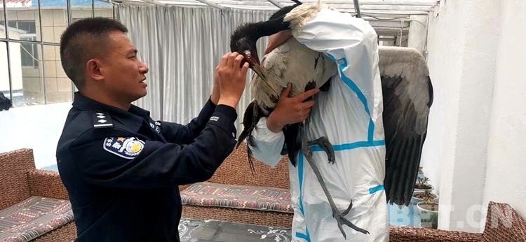西藏阿里馬攸橋邊境檢查站救助國家一級保護(hù)動物丹頂鶴