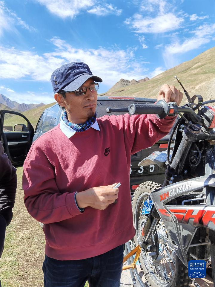 管護(hù)員強(qiáng)巴出發(fā)前調(diào)試巡邏用摩托車(chē)。(受訪者提供)