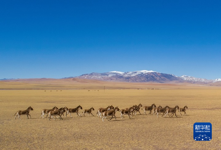 羌塘國(guó)家級(jí)自然保護(hù)區(qū)內(nèi)的藏野驢。(新華社記者孫非攝)