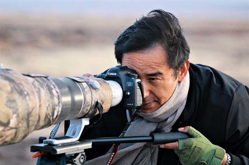 夕陽西下,大風(fēng)肆虐。49歲的才項(xiàng)南加系上圍巾趕忙下車,從后備箱包裹嚴(yán)實(shí)的毛毯里拿出相機(jī)和三腳架,稍做調(diào)試后,便扛著裝備三步并作兩步地趕往200米外的一片濕地?!摆s緊去看看,兩只黑頸鶴在喝水呢!”他說。
