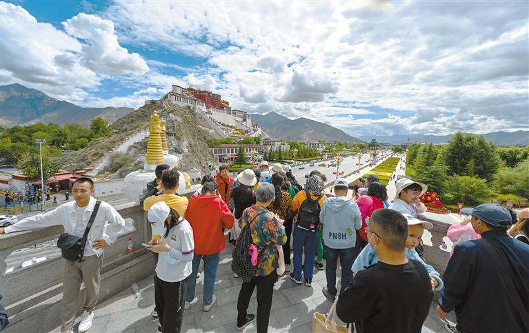 圖為游客在布達(dá)拉宮觀景臺(tái)欣賞美景。記者 旦增蘭澤 攝