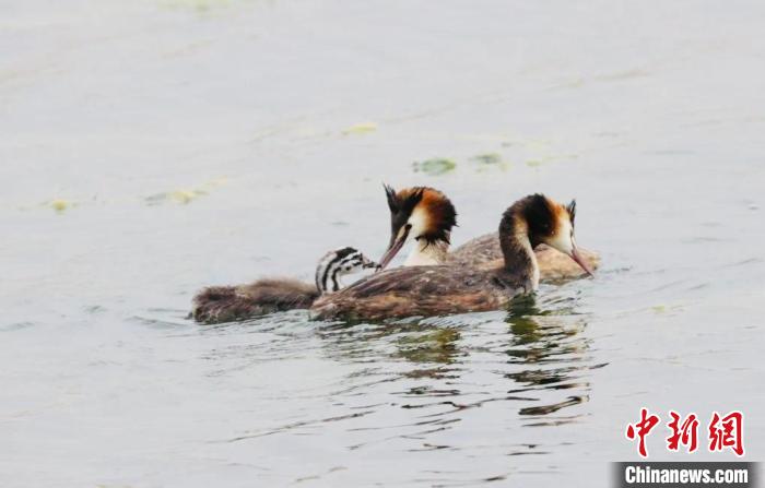 圖為鳳頭鸊鷉一家。多美生態(tài) 供圖