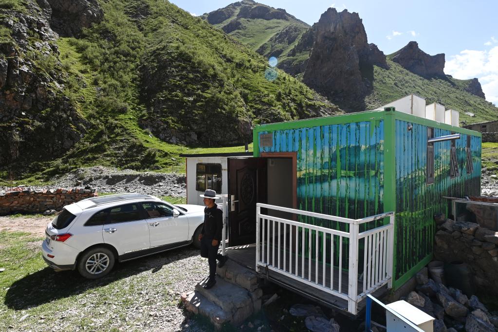 盛夏,昂賽大峽谷流水潺潺、綠草如茵;四周山勢奇絕,常有雪豹、白唇鹿、巖羊等野生動物出沒。在特許經(jīng)營接待集裝箱內(nèi),桑周忙著打掃衛(wèi)生,清洗床鋪,準備迎接從各地到來的自然體驗者。