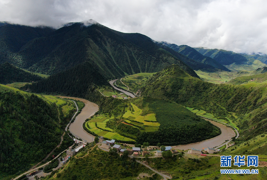 這是2021年8月7日在青海省果洛藏族自治州班瑪縣境內拍攝的瑪可河(無人機照片)。 新華社記者 張龍攝