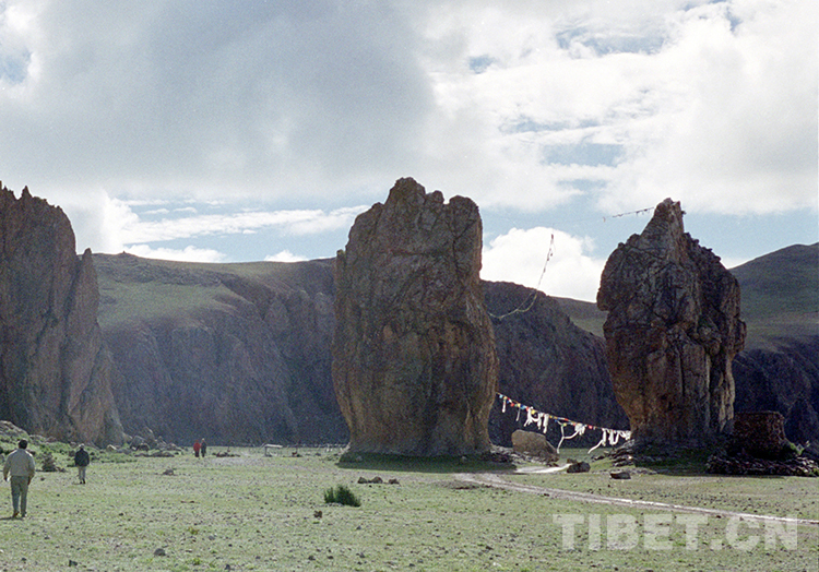 這是納木錯扎西多島的迎賓石柱景觀(唐召明2001年攝)