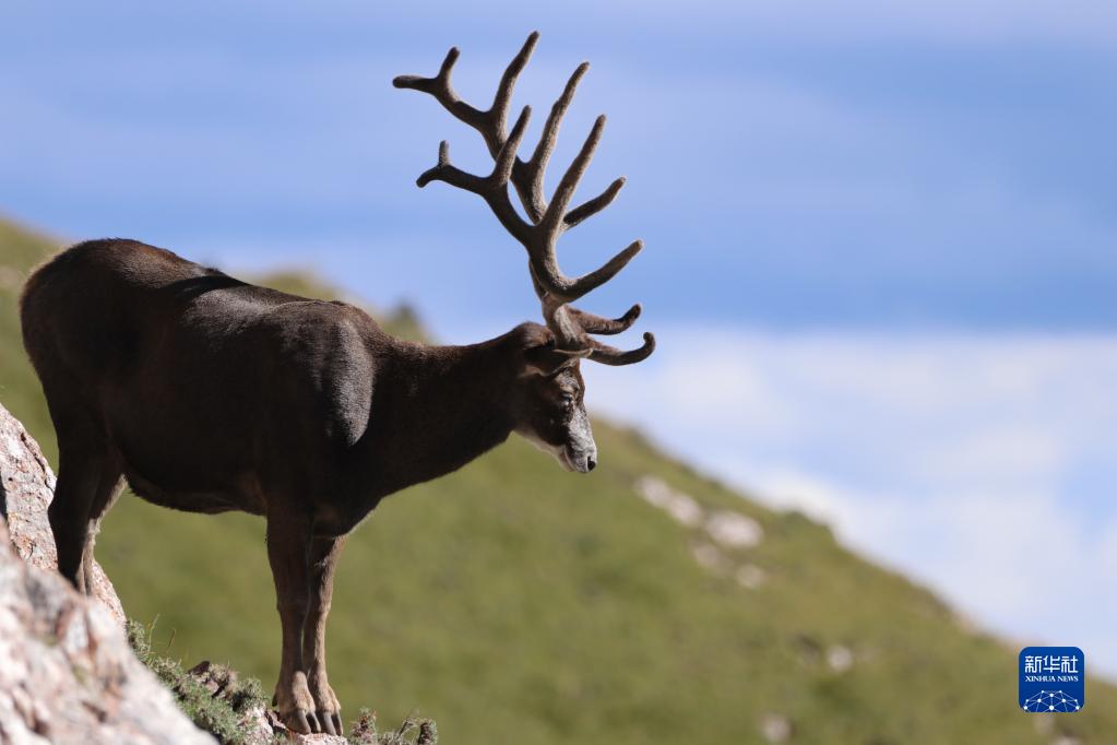 這是在青海省玉樹藏族自治州雜多縣境內(nèi)的昂賽大峽谷拍攝的白唇鹿(8月5日攝)。新華社發(fā)(達杰朋措 攝)