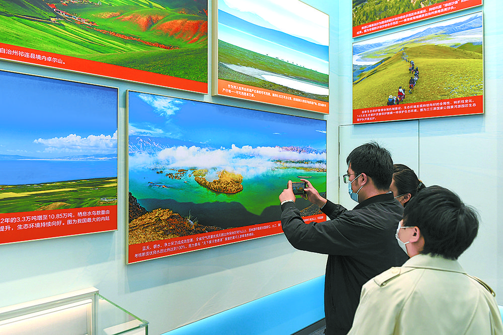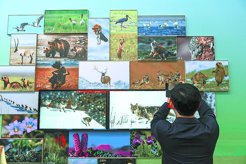 雪豹、兔猻、黑頸鶴、馬麝、廣布紅門(mén)蘭、水母雪兔子、紅花綠絨蒿……青海特有的動(dòng)植物照片墻吸引觀眾駐足,珍稀動(dòng)物的生活智慧和罕見(jiàn)植物的生長(zhǎng)歷程通過(guò)攝影師的鏡頭,向世界展示了青海生物多樣性保護(hù)取得的顯著成就。