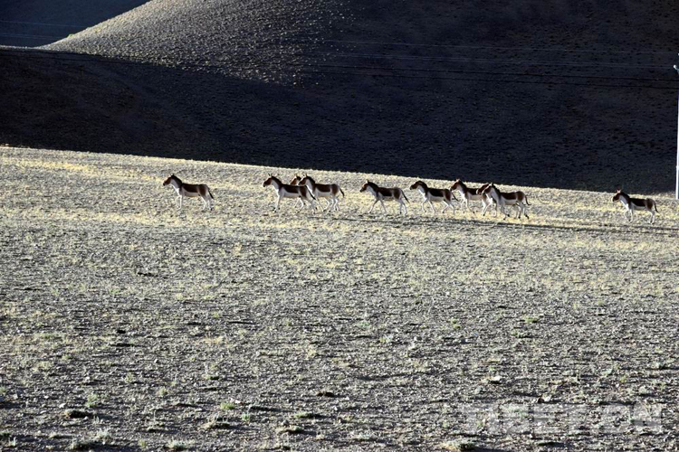 在從獅泉河去往改則縣城的路上,我們看到了一群藏野驢在羌塘草原上無(wú)憂(yōu)無(wú)慮地奔跑,它們身姿矯健,棕黃色的背部和白色的腹部在朝霞的映襯下顯得格外美麗,那種獨(dú)屬于原野的又颯又帥的感染力令大家不由自主地感嘆:太壯觀了!