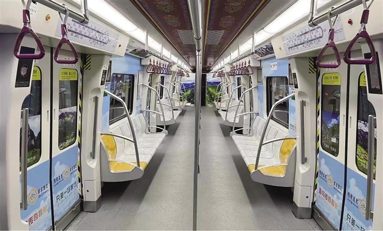 記者看到,在天津地鐵五、六號(hào)線文化中心換乘站點(diǎn)和地鐵一號(hào)線下瓦房換乘站點(diǎn),“昌都元素”已實(shí)現(xiàn)全覆蓋?!敖虿孛褡鍒F(tuán)結(jié)號(hào)”主題列車經(jīng)過精心打造,充滿濃濃“西藏味”,通俗易懂的宣傳語(yǔ)讀起來朗朗上口、充滿視覺沖擊力的照片震撼人心。地鐵站臺(tái)層承重柱、地鐵屏蔽門、車廂內(nèi)門窗、車壁、頂部這些醒目位置,都布置了圖文并茂、通俗易懂的宣傳海報(bào)和標(biāo)語(yǔ)。