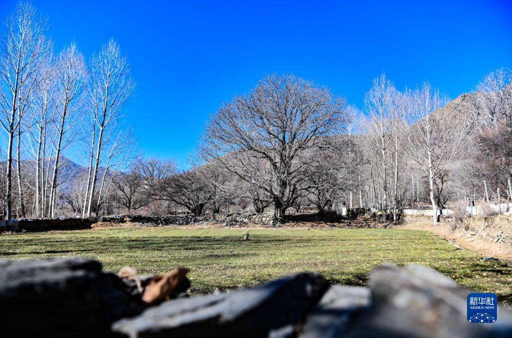 山南市加查縣拉崗村到處可見的核桃樹(2月1日攝)。新華社記者格桑邊覺 攝