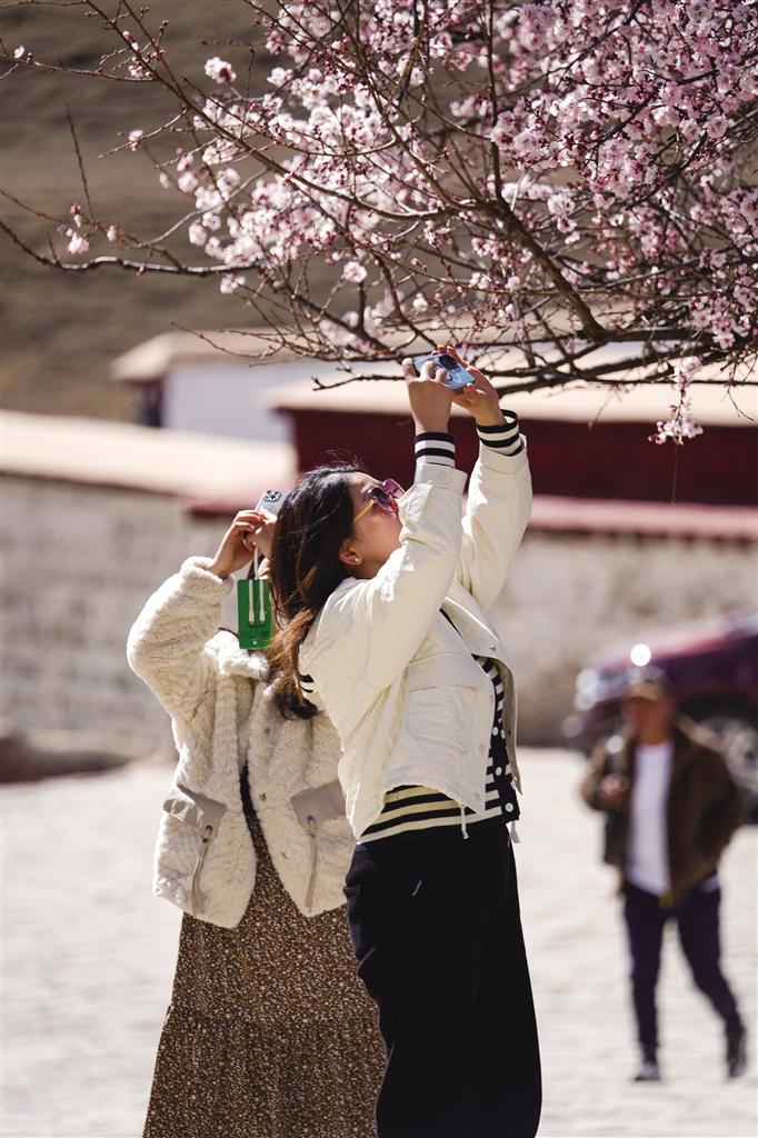 “人間四月芳菲盡,山寺桃花始盛開。”幾場春雪過后,拉薩迎來了暖陽,空氣中浸了些許濕潤,拉薩帕邦喀的桃花經(jīng)過春雪的洗禮,開得更加嬌艷,一陣微風(fēng)拂面,恬淡香味迎面而來,帶來滿滿的春日氣息,瞬間讓人心曠神怡、沉醉其中。