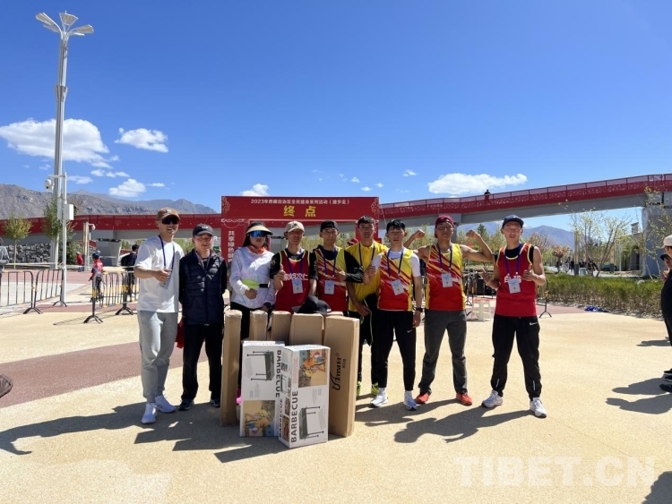 隨后其他組也紛紛來到終點,憑自己的名次到各個領獎處拿獎勵,拍紀念照,現(xiàn)場十分熱鬧。“我們是北高的學生,通過體育老師得知這個活動,便報名參賽,活動很有意義,不僅對強身健體有幫助,還能帶動全民健身的氛圍,”在健步走活動中獲得第六組第一名的拉薩市北京高級中學學生旦增美朗說。