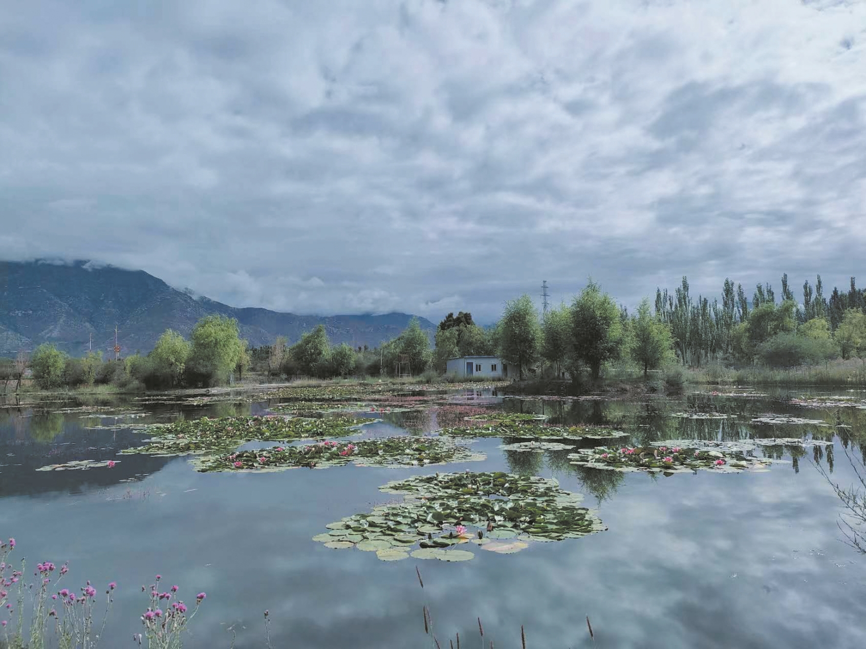經(jīng)過(guò)反復(fù)試驗(yàn),王興邦從全國(guó)各地引進(jìn)的蓮花種苗逐漸適應(yīng)高原環(huán)境,從盆里移栽到池塘后,成活率達(dá)到90%以上。2019年,在拉薩高新區(qū)管委會(huì)的支持下,王興邦又獨(dú)自一人到拉薩高新區(qū)濕地公園內(nèi)種植蓮花。據(jù)王興邦回憶,那時(shí)的濕地公園僅是一片兩三百畝地的灘涂地,環(huán)境臟亂差,無(wú)人管理。夏季漲水后,形成高低不平的洼地,冬季來(lái)臨,土壤裸露。