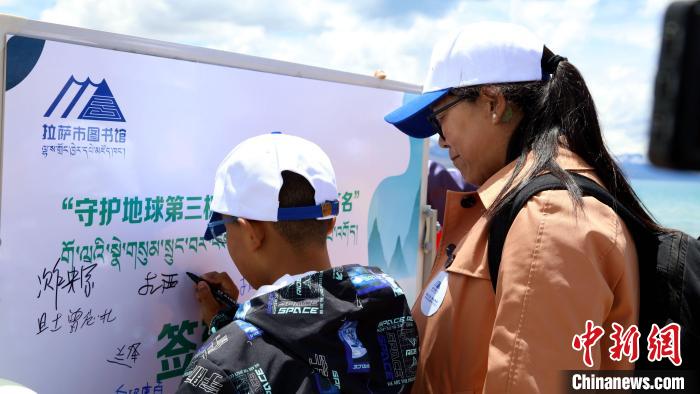 圖為青少年在公益環(huán)保簽名活動(dòng)上簽名。拉薩市圖書館供圖