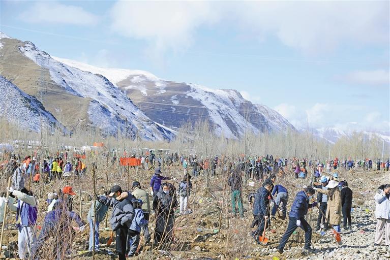墨竹工卡縣干部職工秋季植樹現場。