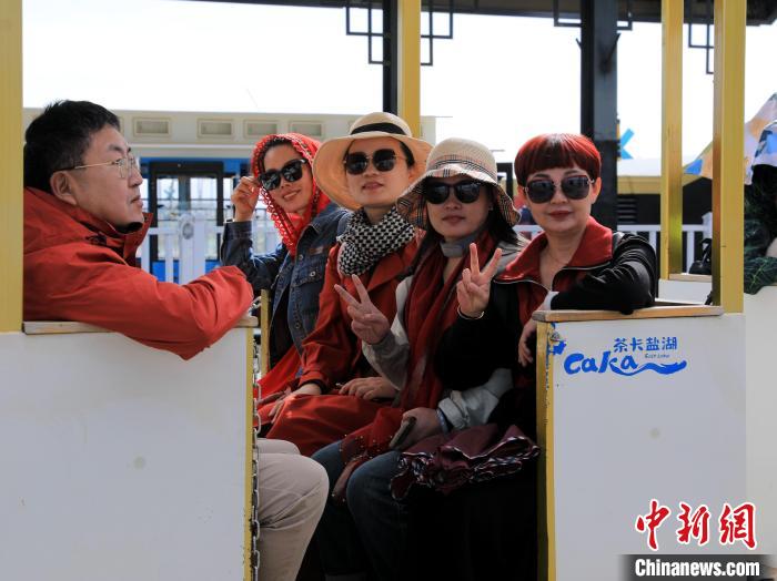 圖為游客乘坐茶卡鹽湖景區(qū)小火車(chē)。王生榮 攝