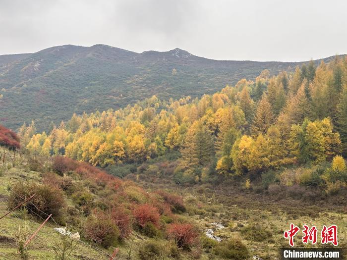 十月,青海省西寧市大通縣塔爾鎮(zhèn)東莊村的“生態(tài)修復(fù)補(bǔ)植復(fù)綠基地”層林盡染。廣袤的青海云杉和沙棘,挺立在深秋的山嶺上。