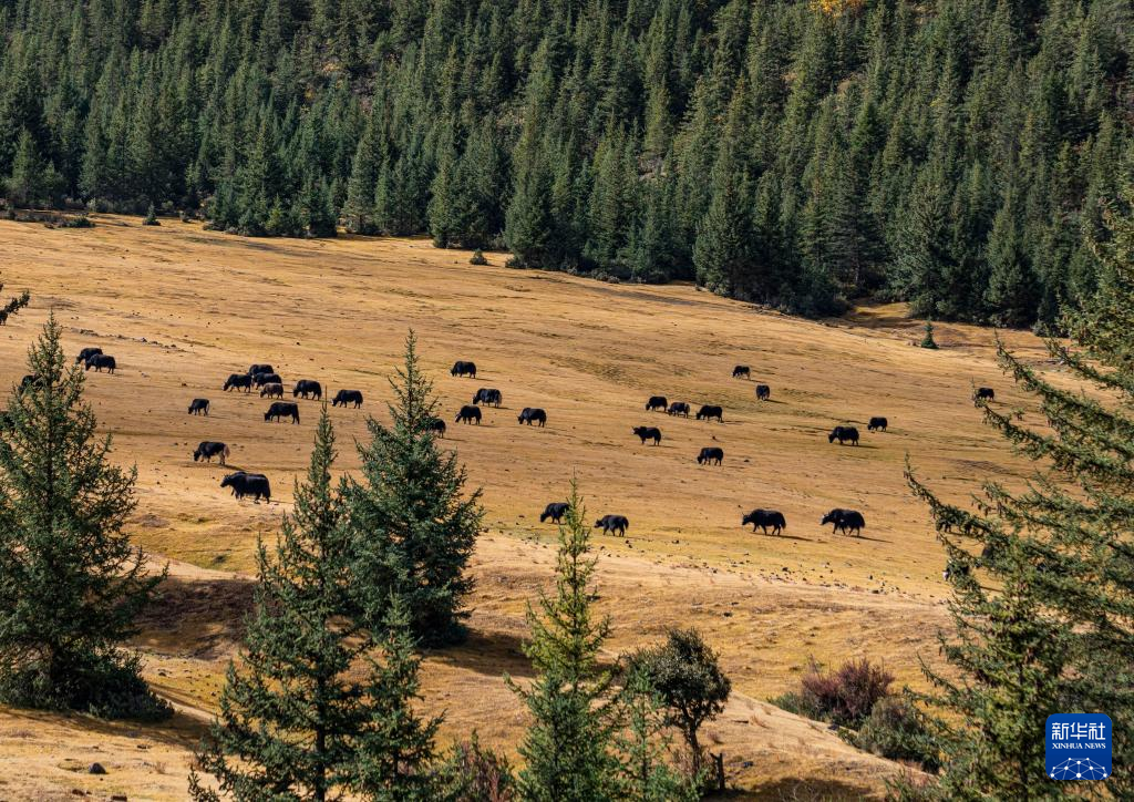 這是在西藏芒康縣如美鎮(zhèn)拉烏村附近拍攝的牧場風(fēng)光(10月20日攝)。新華社記者 孫非 攝
