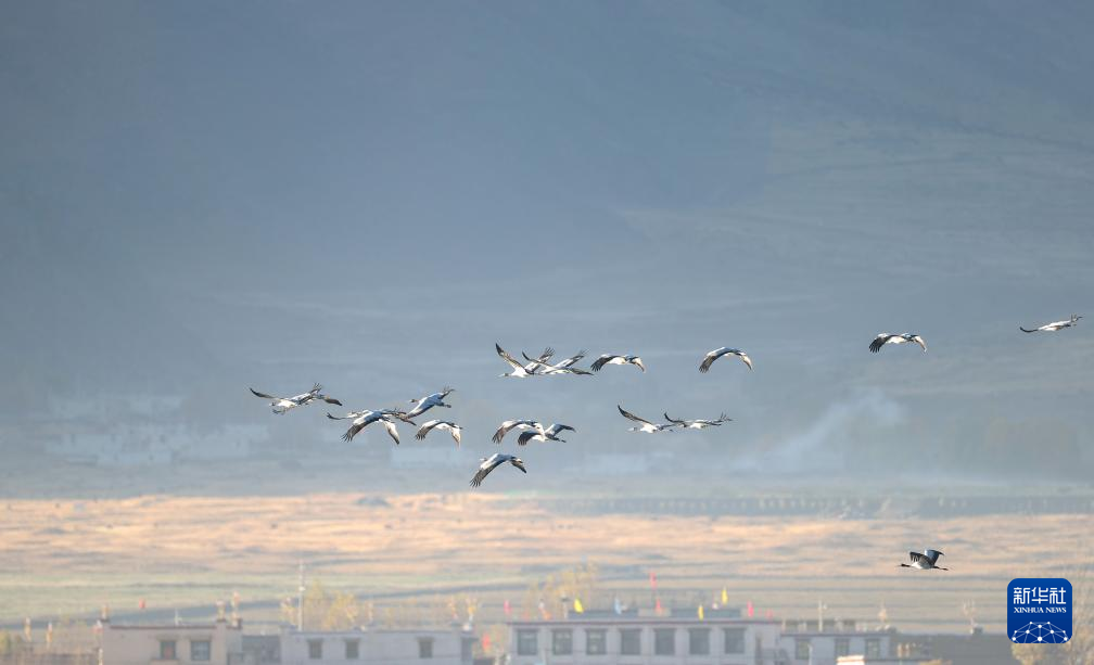 首批抵達(dá)林周過(guò)冬的黑頸鶴