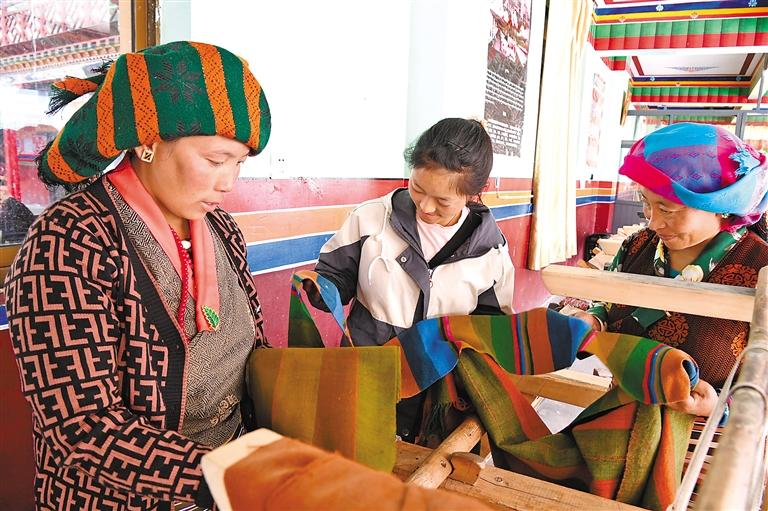 圖為日喀則市仁布縣康雄鄉(xiāng)亞德細(xì)褐羊毛織品農(nóng)民專業(yè)合作社的編制能手在傳授編制技藝。記者 李洲 攝