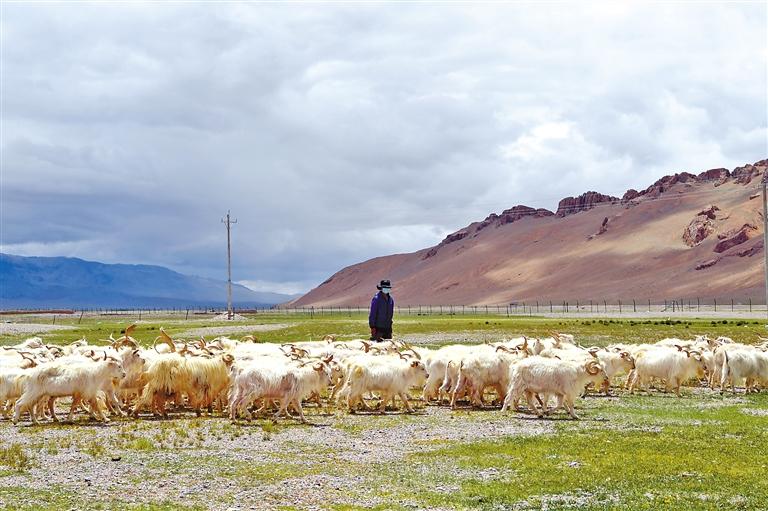 阿里地區(qū)革吉縣絨山羊擴(kuò)繁基地飼養(yǎng)的白絨山羊。記者 洛桑 攝