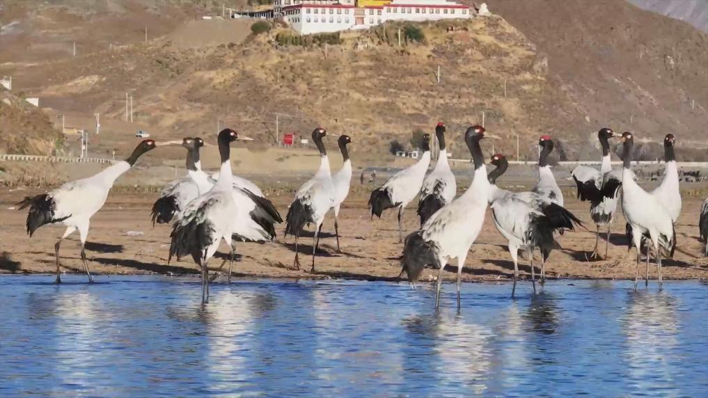 10月下旬,西藏自治區(qū)拉薩市林周縣迎來(lái)2023年第一批越冬黑頸鶴。越冬黑頸鶴將在林周縣一直待到來(lái)年三四月份。