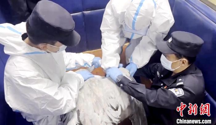 圖為民警和瑪可河林業(yè)局工作人員對灰鶴進行詳細檢查。 曹民鍇 供圖