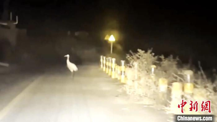 圖為受傷灰鶴站在路中間。 曹民鍇 供圖