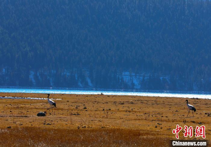 圖為西藏林芝市巴松措景區(qū)里的黑頸鶴。益西旦增 攝