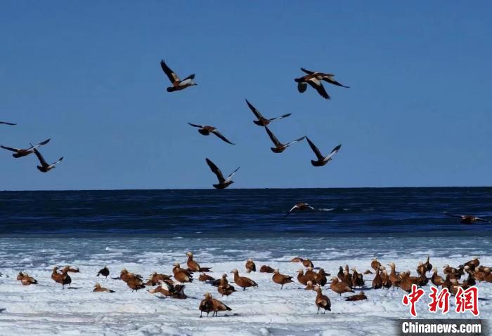 赤麻鴨“定居”青海湖 成為青海湖越冬水鳥絕對優(yōu)勢種