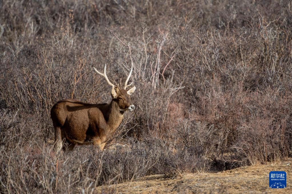 西藏山南市桑日西藏馬鹿縣級(jí)自然保護(hù)區(qū)內(nèi)的西藏馬鹿(1月14日攝)。新華社記者 田金文 攝