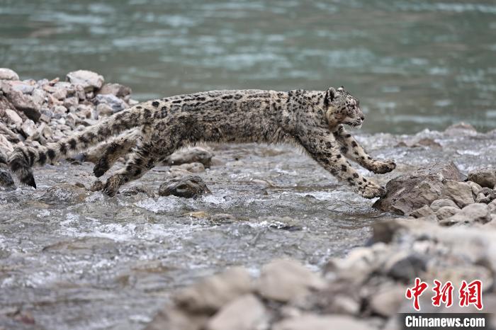 圖為三江源國(guó)家公園瀾滄江源園區(qū)拍攝的雪豹躍過河流。(資料圖)索南旦增攝