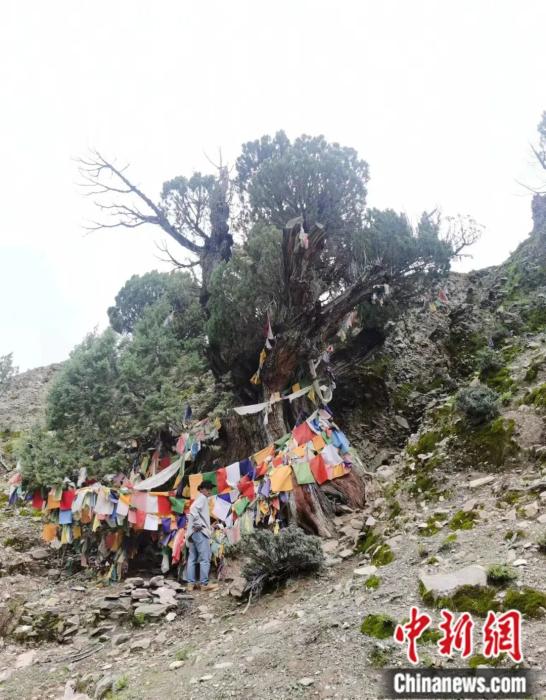2023年8月,在西藏日喀則市昂仁縣一處海拔4260米的地方,張齊兵與團隊發(fā)現(xiàn)一棵大果圓柏千年古樹。受訪者供圖