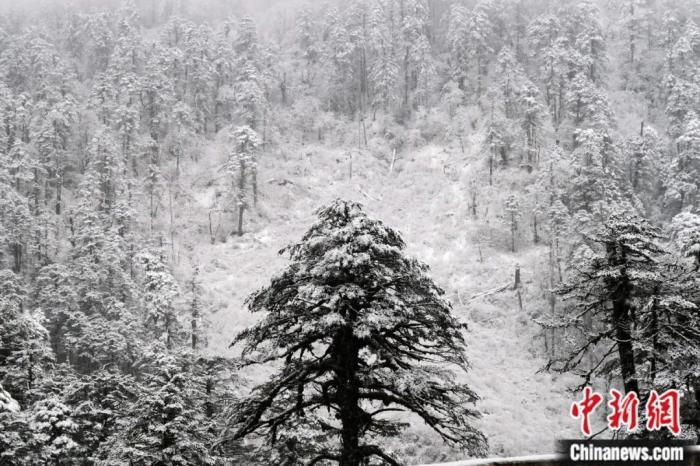 2023年12月18日,西藏墨脫縣一片高山針葉林被積雪覆蓋,枝干上有附生植物。墨脫被稱為生物多樣性寶庫。江飛波 攝