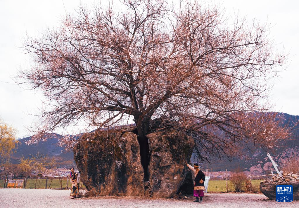 當?shù)刂两窳鱾饕粍t關(guān)于這株桃樹的浪漫故事。傳說一少年為給跌落山谷的母親療傷,向桃樹之王壽多求取仙桃。壽多被其救母之心打動,讓小女兒送去仙桃,兩人互生情愫,浪漫的愛情讓仙桃生根發(fā)芽,破石而出,綻放桃花。