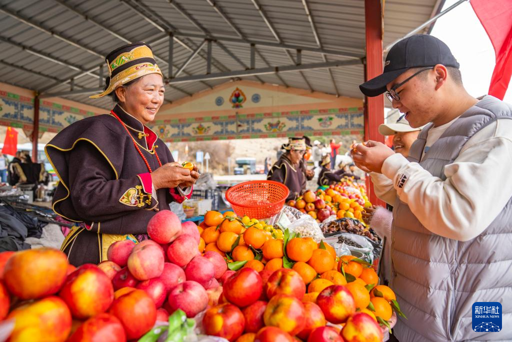 沿著219國(guó)道途經(jīng)西藏林芝米林市羌納鄉(xiāng)羌渡崗村時(shí),尼洋河與雅魯藏布江交匯的壯美景觀令人駐足,成為許多游客的打卡點(diǎn)。勤勞的羌渡崗村婦女們,在這里擺起水果攤,還賣起了甜茶、青稞餅,吸引了眾多遠(yuǎn)道而來(lái)的游客。