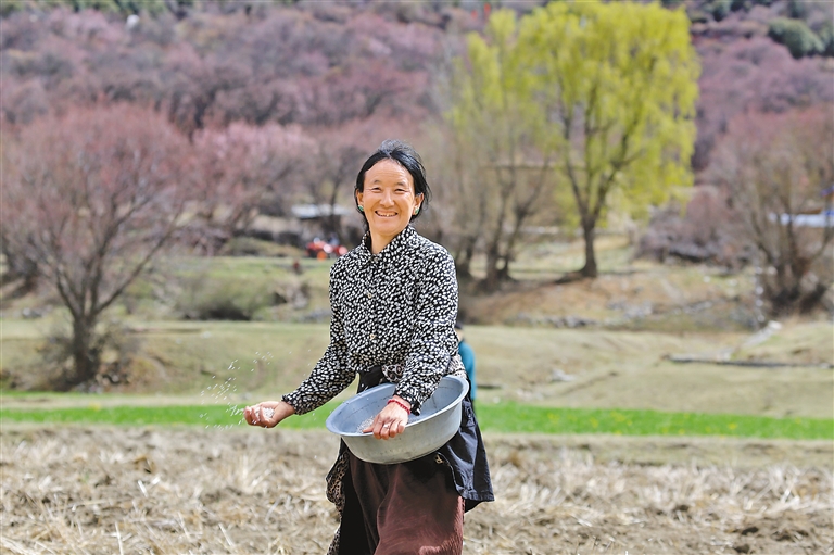 一輛紅色的旋耕機(jī)在田地旁停下來,曲美仁增邊換犁頭,邊感嘆著科技帶來的便捷:“以前耕地全靠牲畜,費(fèi)時(shí)耗力,現(xiàn)在開著旋耕機(jī)就把地耕完了,聽著這機(jī)器轟隆隆的聲音,我覺得格外開心,好像在說我們尼屋的春天特別美,我們的生活肯定也會(huì)更幸福!”