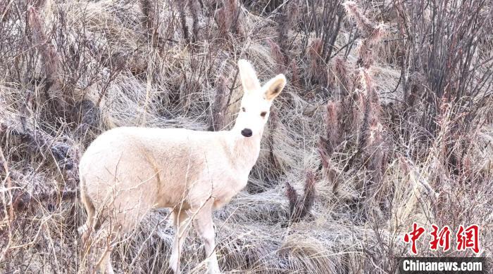 圖為極為罕見的白色馬麝。(青海省班瑪縣融媒體中心 供圖)