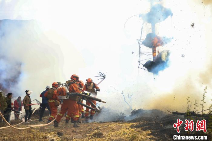 演練現(xiàn)場,森林消防進(jìn)行滅火。昌都市森林消防支隊 供圖